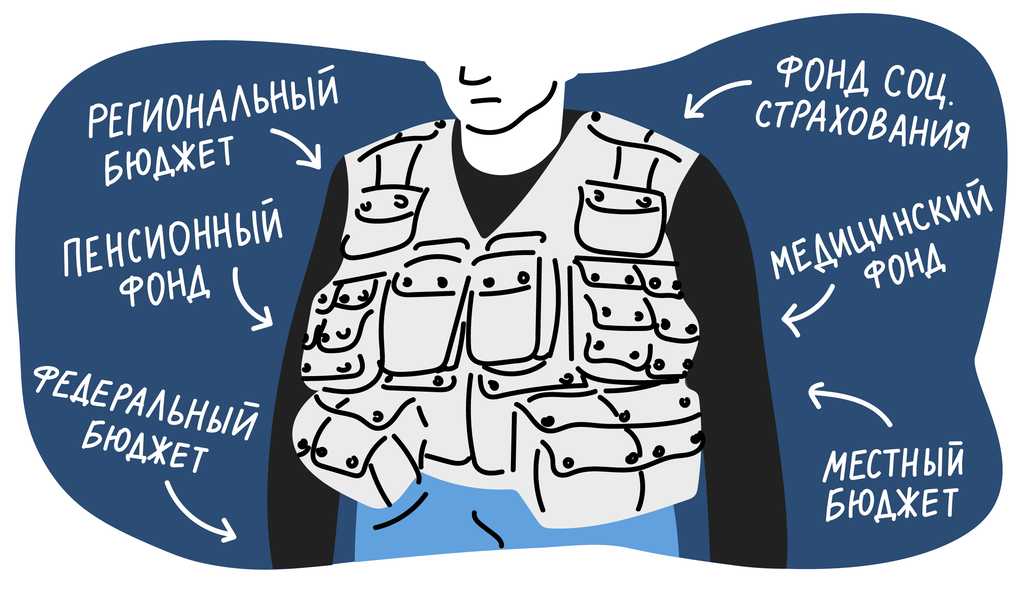 Все собираемые налоги и другие виды общественных доходов поступают в бюджеты (государственные и муниципальные) и расходуются в соответствии с законодательно установленными процедурами и правилами. Бюджет сегодня — это не просто общий «мешок», из которого оплачиваются те или иные нужды, а сложная система сбора и использования денежных средств. В современной России бюджетная система состоит из федерального бюджета, бюджетов региональных (то, есть субъектов Федерации), местных бюджетов (городских и сельских поселений и пр.), а также государственных внебюджетных фондов — пенсионного, медицинского и социального страхования. Каждый из уровней ответственен за определенные виды расходов и имеет четко обозначенные источники финансирования.