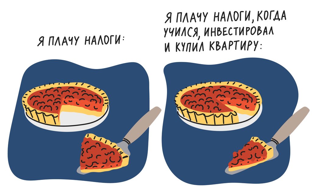 Сначала разберемся в механизме работы налогового вычета. Предположим, вы имеете годовой доход по месту работы в 500 тысяч рублей, право на вычет— в 100 тысяч. Если бы вычета не было, то весь доход был бы обложен по ставке 13% и государство получило от вашего работодателя 65 тысяч рублей (а вы в качестве зарплаты на руки 435 тысяч). Налоговый вычет уменьшает налогооблагаемую базу. В нашем примере это означает, что налог будет рассчитан только с 400 тысяч. Вы получите на руки 448 тысяч, а государство в качестве НДФЛ— 52 тысячи рублей.