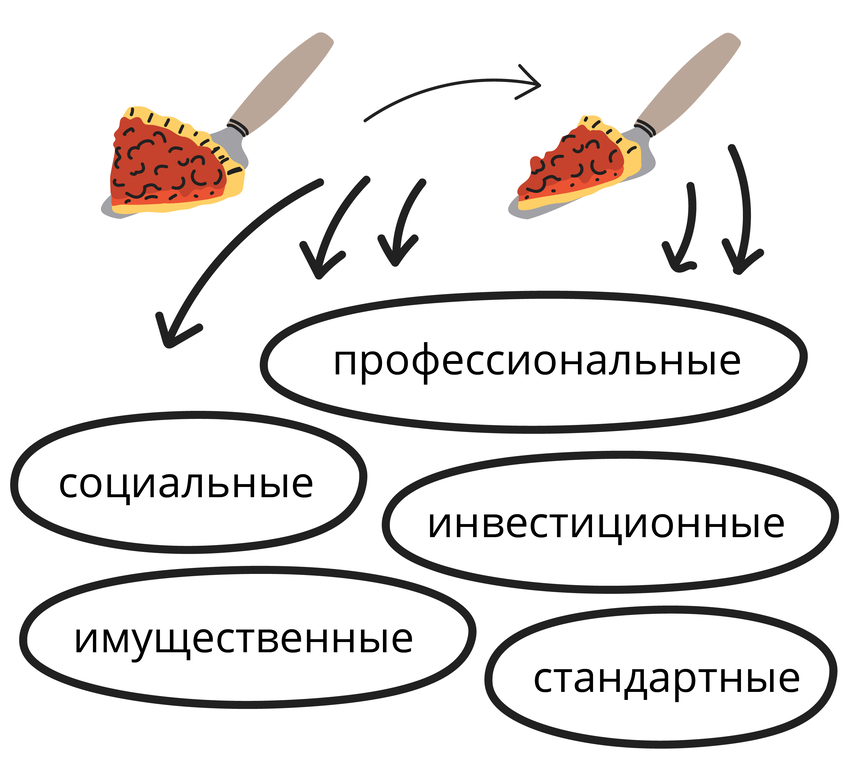 Налоговый кодекс РФ указывает на пять видов вычетов: стандартные, социальные, имущественные, инвестиционные и профессиональные.