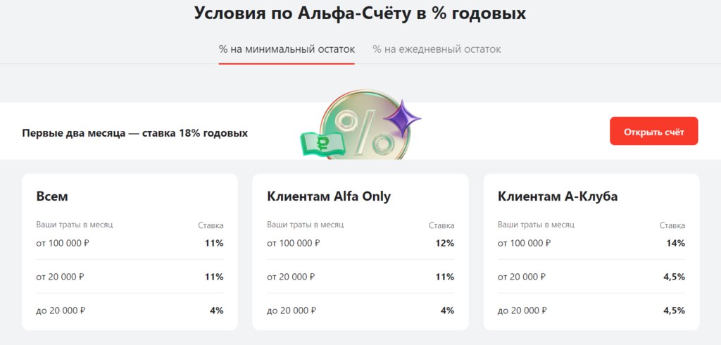 Запрет для банков менять процентную ставку по срочным вкладам привел к появлению такого любопытного финансового продукта, как накопительные или сберегательные счета: банк предлагает клиентам не срочный вклад, а вроде бы текущий счет, с которого можно в любой момент взять деньги и в любой момент добавить, но если при этом остаток по счету достаточно велик, то на него начисляются проценты по ставкам, сопоставимым с процентами по срочным вкладам. При этом банк может регулярно менять ставки, может рассчитывать проценты по достаточно сложным формулам. Вот, например, данные с сайта «Альфа-Банка» по накопительному счету - см. скриншот: