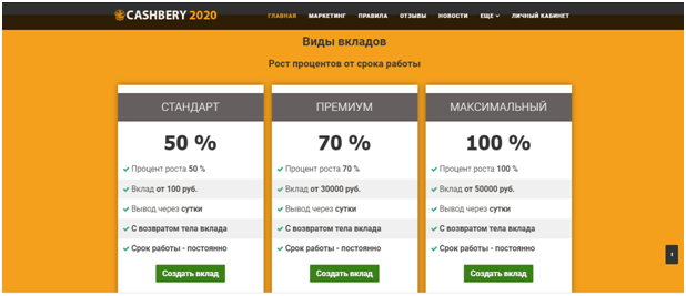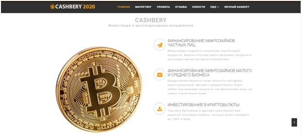 Принтскрины сайта финансовой пирамиды «Кэшбери» (2020 г.)